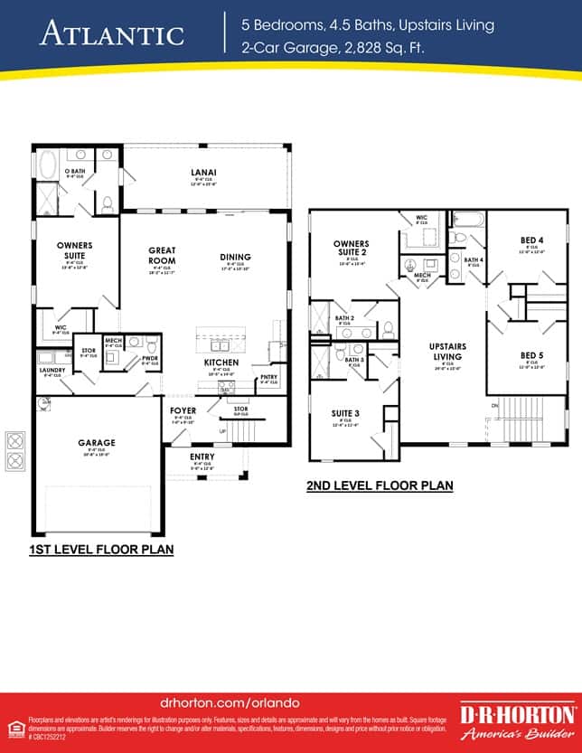 DR Horton has been building their impressive five and six beds with five bathrooms offering a minimum of 2,024 sq ft in the brand new community of Solterra Resort. Brand new townhomes at a lower price point have begun to be built in this wonderful community. Consisting of 4 and 5 bedroom floor plans both of these townhome floor plans will have a swimming pool and outside bathroom. This community will be aimed at the Disney visitors as it is located just minutes from the maingates. The gated entrance and handful of amenities located at the clubhouse insure a resort style feel to this resort. Click the images below to view the floor plans of each.